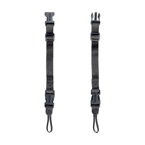 Ces connecteurs offrent une longueur réglable de 26,7 cm à 34,3 cm de chaque côté et peuvent se clipser ensemble pour former une poignée de transport compacte. Fabriqués en nylon avec onglets en cuir, ils allient robustesse et confort.