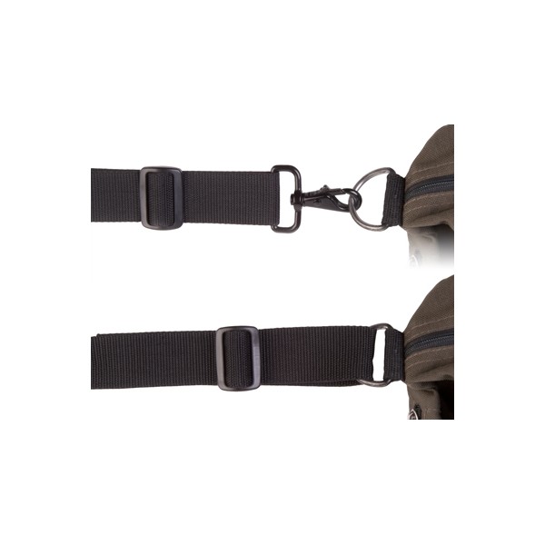 Les mousquetons en métal pivotants fixent la sangle à la plupart des sacs et peuvent être rapidement enlevés.