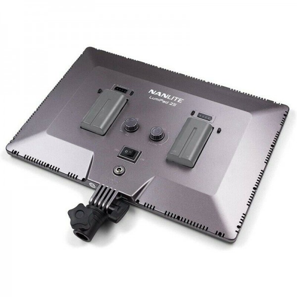 Optimisée pour une utilisation en studio ou en extérieur, la série LumiPad peut fonctionner soit avec l'adaptateur secteur soit avec des batteries de type Sony NP-F (non incluses), vous pouvez donc l'utiliser dans n'importe quel endroit, quelle que soit la disponibilité de l'alimentation. Avec verrouillage de la batterie pour empêcher la batterie de tomber.