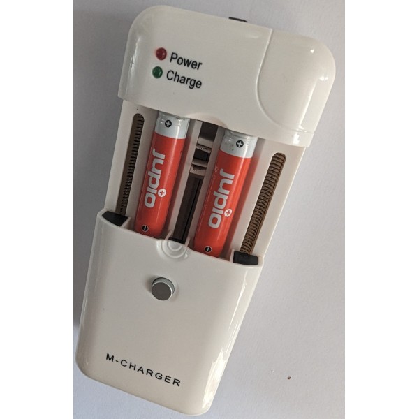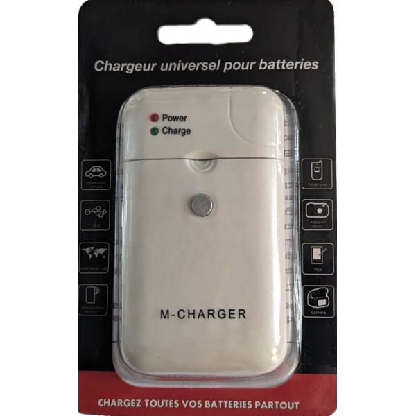 Chargeur universel compatible avec piles AA, AAA et la plupart des batteries photo et vidéo.