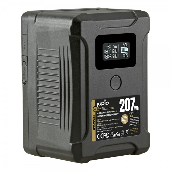 batterie V-Mount est dotée d'une batterie Li-ion de 207Wh, 14,4 V, 14000mAh , de haute capacité et de haute qualité, qui offre une forte autonomie pour les projets de production vidéo et de photographie de longue durée.