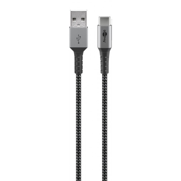 Câble Textile USB-C™ vers USB-A avec Fiches Métalliques 2 m