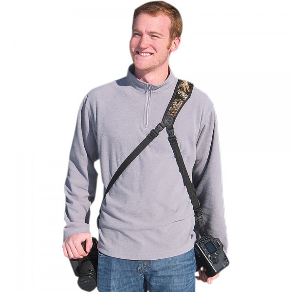 L'utility Sling ™ double offre un accès rapide à deux appareils sur une seule épaule.