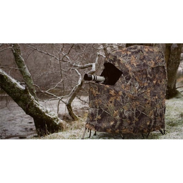 Elle possède 4 fenêtres qui ont aussi une maille camouflage. La tente Stealth Gear est légere et très simple à assembler, et se plie automatiquement. Vous pourrez ainsi vous rapprocher de la faune et protégé contre les éléments.