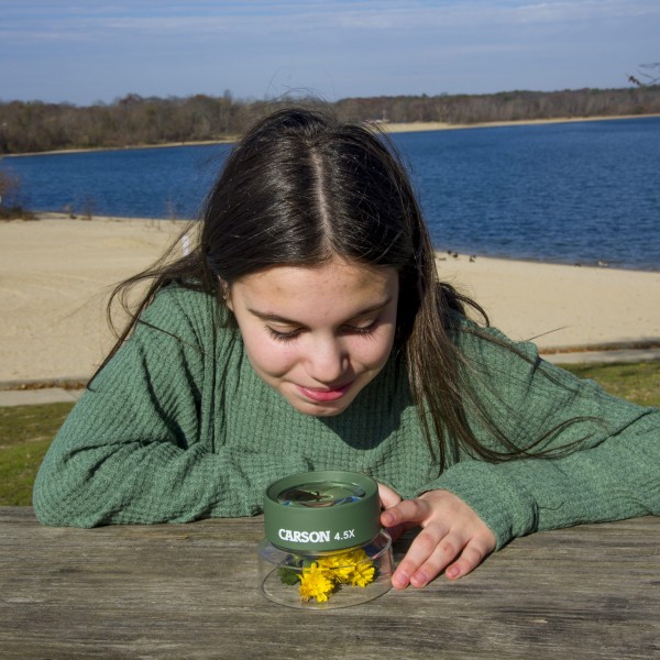 La BugLoupe™ sur pied pré-focalisée HU-55  4.5X est une loupe pour enfants permettant de visualiser les insectes, les plantes, les pièces de monnaie, les timbres, etc.